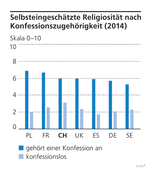 Fragestellung: «Ungeachtet der Tatsache, ob Sie nun einer bestimmten Religion angehören oder nicht: Wie religiös sind Sie? (0 bedeutet ‹überhaupt nicht religiös›, 10 ‹sehr religiös›.»