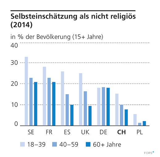 Fragestellung: «Ungeachtet der Tatsache, ob Sie nun einer bestimmten Religion angehören oder nicht: Wie religiös sind Sie? (0 bedeutet ‹überhaupt nicht religiös›, 10 ‹sehr religiös›.»