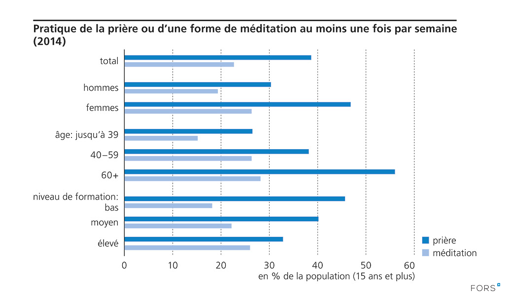 Pratique de la prière ou d’une forme de méditation au moins une fois par semaine