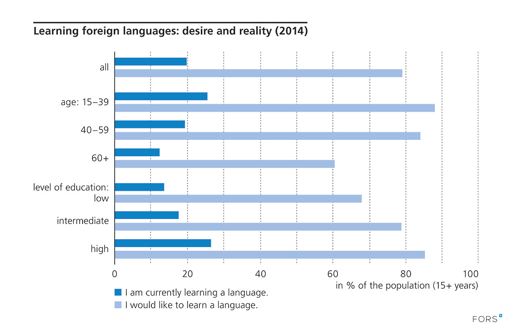 Question wording: “Over the past 12 months, have you started learning one or several languages or have you worked on improving your language skills? (pupils/students: excluding compulsory language courses); Assuming you had sufficient time and money, are there one or several languages that you would like to learn or improve you skills?”