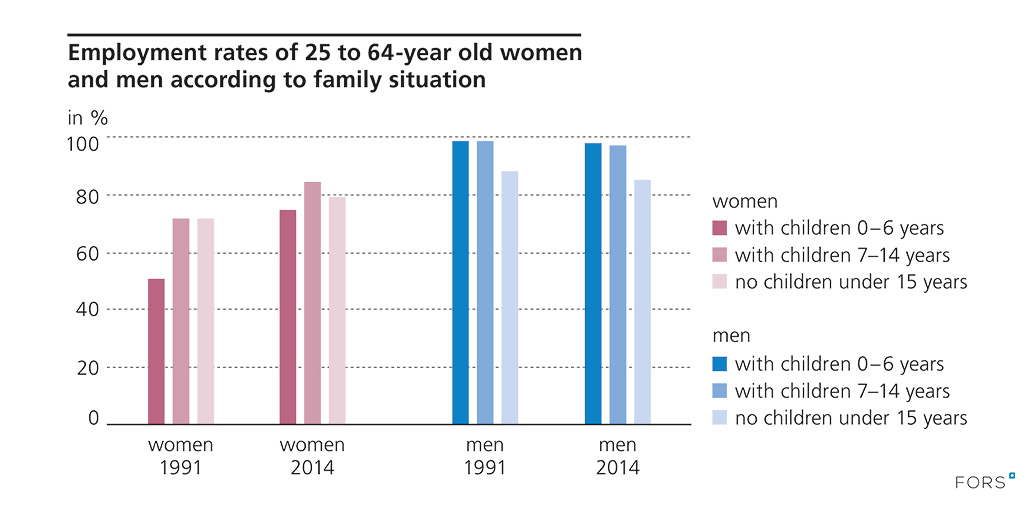 Sources: SFSO, Working population statistics and SLFS: 1991: 2nd quarter, 2014: Figures for entire years