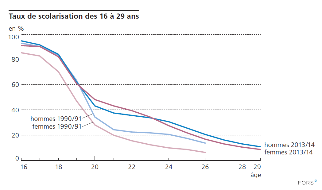 Sources: OFS, statistique des élèves et des étudiants, 1990/91 et 2013/14
