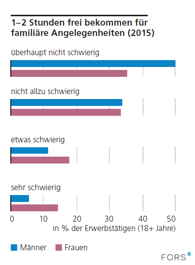 Fragestellung: «Haben Sie zugunsten Ihres Familienlebens jemals auf eine gute berufliche Chance verzichtet oder würden Sie es machen? Wie schwierig wäre es für Sie, während der Arbeitszeit eine oder zwei Stunden frei zu bekommen, um sich um persönliche oder familiäre Angelegenheiten zu kümmern?».